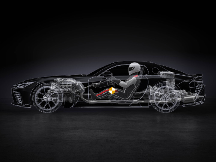 技术上,LFA Concept 直接继承了 GR GT 的全铝承载式车身框架。 这一共用策略确保了即便动力形式改变,车辆的基础动态特性(刚性、质量分布、悬挂几何等)仍能维持一致的工程基准。