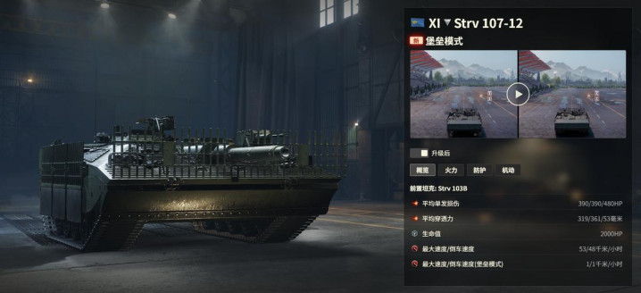这次WG在传统瑞典TD的双形态,即正常机动的常规模式和主打输出的攻城模式基础上,给Strv 107-120搞出了一个性能更加极端,输出也更猛的“堡垒模式”。
